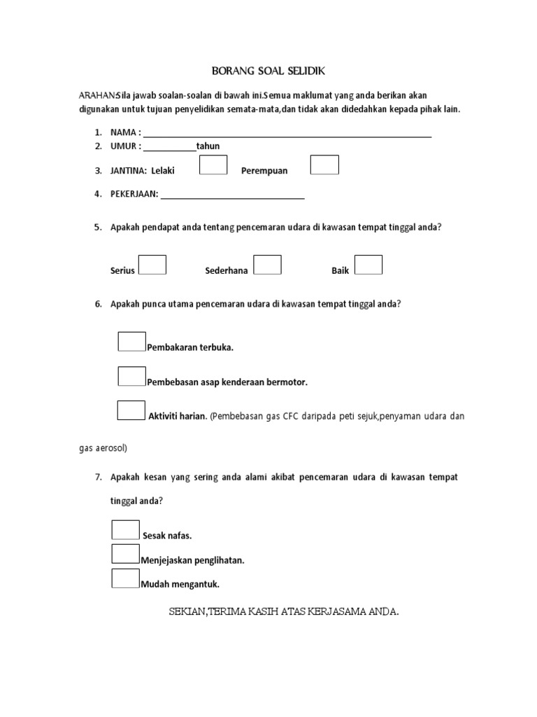 Contoh Borang Soal Selidik Pencemaran Udara Geografi Pt3 Pdf