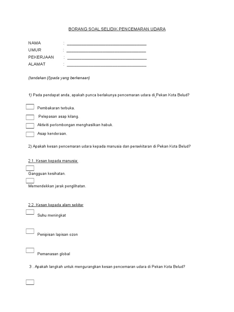 Borang Soal Selidik Pencemaran Udara Pdf